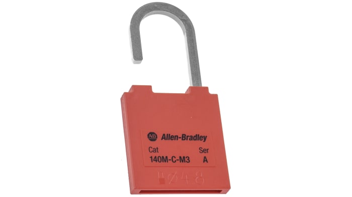 Padlock attachment used in conjunction with rotary lockable handle (stock no. 351-5779) to increase the number of padlocks to three (with shaft diameters of 3 to 6mm) to lock off a 140M circuit breaker