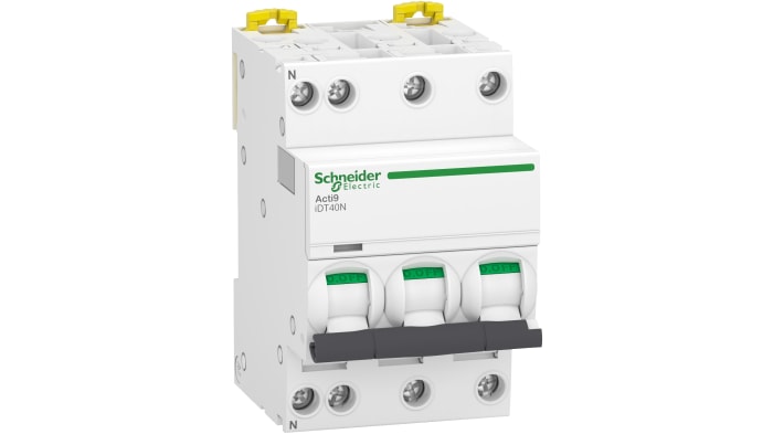 This Schneider 18 mm Acti9 iDT40 Mini Circuit Breaker, with tripping capacity of 10 kA according to IEC 60947-2, is intended for tertiary applications.