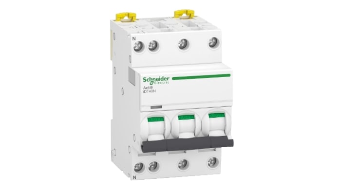 The Schneider Electric Acti9 series miniature circuit breaker has thermal-magnetic trip unit technology with breaking capacity of 6 kA. It is toggle control type with ON/OFF & trip indicator. Relative humidity of this type of circuit breaker is 95 % at 55 °C. It provides excellent circuit protection particularly in combating short circuits and overload currents. These MCBs are compliant with standards such as IEC/EN 60898 -1 & 60947-2.