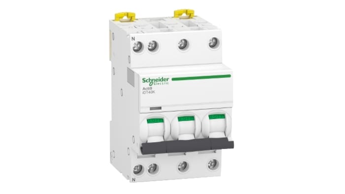 The Schneider Electric Acti9 series miniature circuit breaker has thermal-magnetic trip unit technology with breaking capacity of 4.5 kA. It is toggle control type with ON/OFF & trip indicator. Relative humidity of this type of circuit breaker is 95 % at 55 °C. It provides excellent circuit protection particularly in combating short circuits and overload currents. These MCBs are compliant with standards such as IEC/EN 60898 -1 & 60947-2.