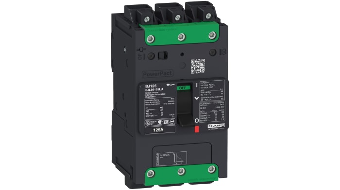 The Schneider Electric circuit breaker has 3 number of poles with rated current of 100 A.It has thermal-magnetic trip unit technology.