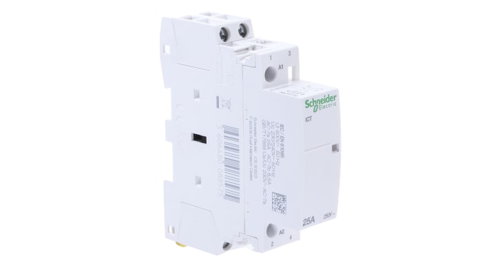 The A9C20732 is a miniature 2 pole contactor featuring a 230 V ac operating coil and an AC-3 full load current of 25 A.