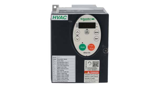 The Altivar ATV212 inverter drive is a recent updated version of the earlier version ATV21 variable speed motors from Schneider Electric. This VFD drive has an output frequency control of 0.5 to 200Hz, The Altivar 212 HVAC drive has been built for performance, intelligence and protection.