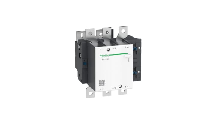 The Schneider Electric TeSys F contactor, 3 poles (3NO), 185A/690V AC-3, for motor applications up to 90kW@400V. It provides a low sealed consumption 230V 40-400Hz AC coil, bolt terminals for bars or cables with lugs. For high operating rates until 2400 cycles/hour and environments until 55°C, it procures high reliability and durability.
