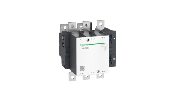 The Schneider Electric TeSys F contactor, 3 poles (3NO), 225A/690V AC-3, for motor applications up to 110kW@400V. It provides a low sealed consumption 230V 40-400Hz AC coil, bolt terminals for bars or cables with lugs.
