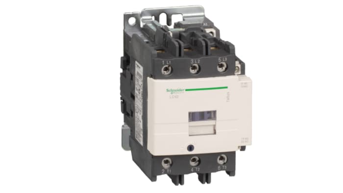 The Schneider Electric TeSys D contactor, 3 poles (3NO), for motor control applications up to 80A/1000V AC-3 (37kW@400V). It provides a 240V 50/60Hz AC coil, 1NO+1NC built-in auxiliary contacts (NC mirror certified), power connection by screw terminals, control connection by screw clamp terminals.