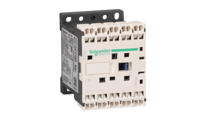 The Schneider Electric TeSys K contactor, 4 poles (4NO), for non-inductive load control applications up to 10A/690V AC-1. It provides a 48V 50/60Hz AC coil, without built-in auxiliary contact, connection by spring terminals.