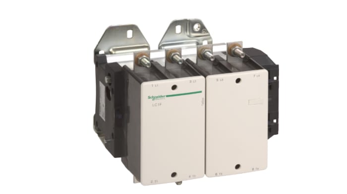 The Schneider Electric TeSys F contactor, 4 poles (4NO), 500A/1000V AC-1, for non-inductive load applications. Contactor with no coil to allow a later selection and installation (coil to be ordered separately), it provides bolt terminals for bars or cables with lugs.