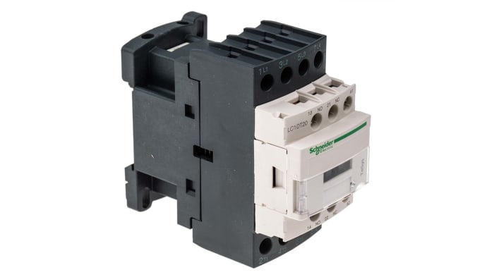 The Schneider Electric LC1DT20P7 model is a 4 pole contactor featuring a 230 V ac operating coil, with an AC-3 full load current rating of 20 A.