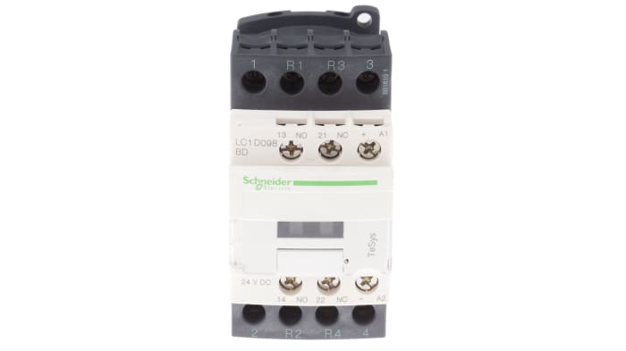 The Schneider Electric LC1D098BD model is a 4-pole contactor featuring a utilisation category of AC-1. The control circuit voltage is 24 V DC with 2 NO + 2 NC power pole contact composition. The rated operation current is 60 A (at <60 °C) at <= 440 V AC AC-1 for power circuit.
