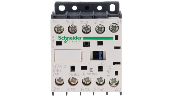 The Schneider Electric LC1K1201B7 model is a 3-pole contactor featuring a utilisation category of AC-1 and AC-3 and AC-4. The control circuit voltage is 24 V AC 50/60 Hz with 3 NO power pole contact composition. The rated operation current is 20 A (at <50 °C) at <= 440 V AC AC-1 for power circuit, 12 A at <= 440 V AC AC-3 for power circuit and 16 A (at <70 °C) at 690 V AC AC-1 for power circuit.