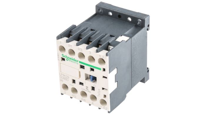 The LP1K09008BD is a miniature 4 pole contactor featuring a 24 V dc operating coil and an AC-3 full load current of 20 A.