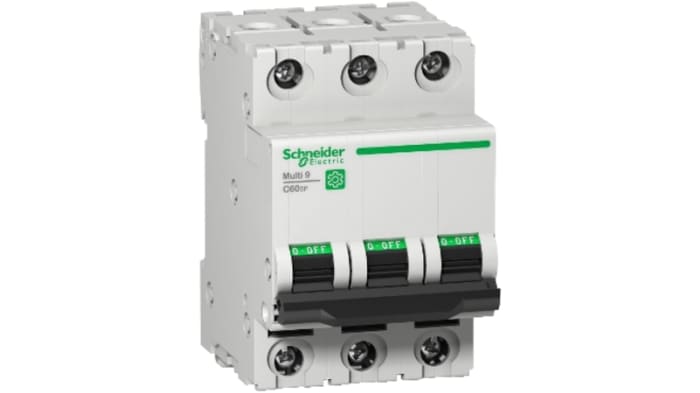 The Schneider Electrics product Multi9 C60SP is a low voltage miniature circuit breaker (MCB). It is a 3P circuit breaker with 3 protected poles, 10A rated current and C tripping curve. The rated short circuit breaking capacity goes up to 10kA at 415VAC conforming to EN/IEC 60947-2 standard and 10kA at 415VAC conforming to EN/IEC 60947-2 standard. This product complies with both industrial standard EN/IEC 60898-1 and residential standard EN/IEC 60947-2. It has been designed to offer enhanced protection by preventing, protecting people and equipment from electrical threats. This product protects from short circuit, earth leakage and overload. This product is dedicated for original equipment manufacturers (OEM) and control panel builders. It has an electrical endurance going up to 10000 cycles and a mechanical endurance going up to 20000 cycles. The Ue operational voltage is 240VAC. The Ui rated insulation voltage is 500VAC. The Uimp rated impulse withstand voltage is 6kV.