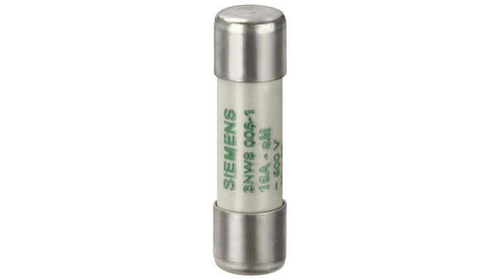 The Siemens SENTRON cylindrical fuse link, with operational current 2A and 500V (AC), has size of 10 x 38 mm.