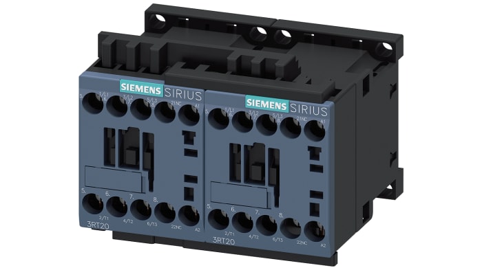 The Siemens reversing contactor assembly has size S00 screw terminal electrical and mechanical interlock reversing contactor assembly SIRIUS 3RA23 for switching motors including change of rotation direction.