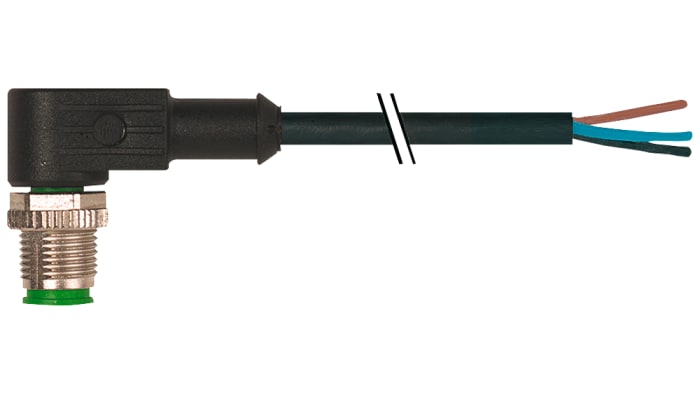 The Siemens 3RK1902-4HC01-5AA0 is a Control cable Pre-assembled at one end M12 connector angled, 5-pole with 5 m cable 5 x 0.34 mm2 A-coded max. 4 A PUR sheath black