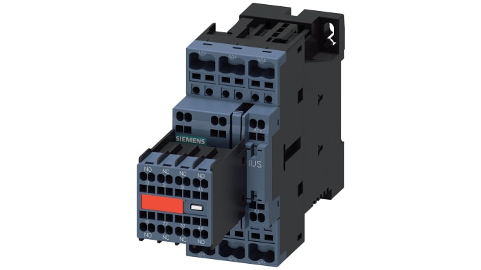 The Siemens SIRIUS 3RT2 series is a power contactor for switching motors. It has a size of S0. It has power rating of 11 kW. The design of surge suppressor is with plug in diode combination. The type of electrical connection for main current circuit and for auxiliary and control current circuit is through spring-loaded terminal. It has captive auxiliary switch. They offer convincing performance from a compact design with high contact reliability. They can be combined with a variety of other components in the load feeder. The contactors offer the best connection to the automation level for every application direct or via PLC input. The contactor are climate-resistant and approved for worldwide use e.g. IEC and UL/CSA.