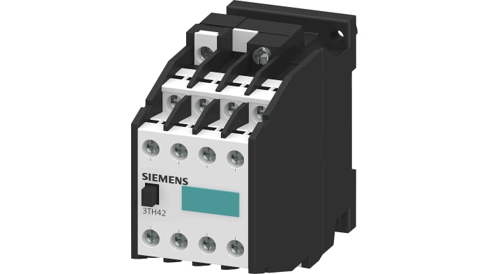 The Siemens contactor relay 44E with 4NO + 4NC contacts. The auxiliary contactor 3TH4 used for switching the control signals in the control circuit. The SIRIUS 3TH4 contactor relays have standard-compliant terminal designations and a reliable connection technology. Thanks to the multiplication of outputs, simultaneous switching of up to 10 auxiliary circuits is possible. The contacts are designed with positively driven operation for safety applications as well as SUVA versions.