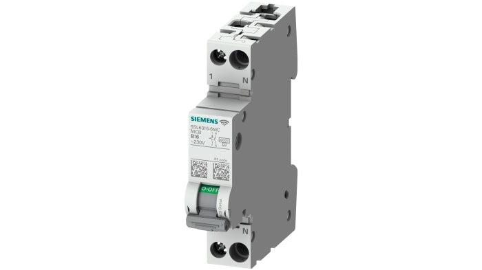 The Siemens 5SL6 COM miniature circuit breakers with measurement and communication capability record information about the breaker status and faults in the circuit. The miniature circuit breaker operates on 230 V with 1+N pole configuration. In the event of an overload or short-circuit, circuit breakers safely cut off the connected circuit and reliably protect electrical installations and equipment from damage.