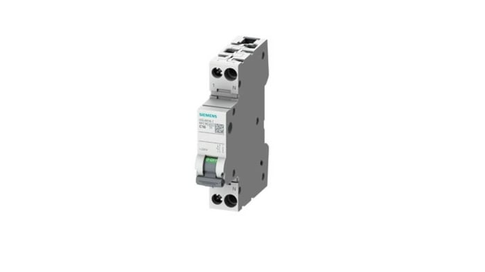 The Siemens miniature circuit breaker has 1P+N pole with C class tripping characteristics. Operating voltage range is from 24 V to 250 V AC also has 10 A current rating. It is touch protected