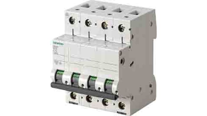 The Siemens 5SL6 series four-pole miniature circuit breaker has a current rating of 63 A and 6 kA breaking capacity. The miniature circuit breaker is the fuse for short-circuit protection. Siemens offers a comprehensive portfolio of protection, switching, measuring and monitoring devices, distribution systems as well as switches and sockets for safe and efficient electrical infrastructure in buildings and industry.