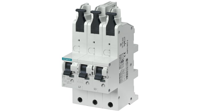 The Siemens 5SP3 series is the main miniature circuit breaker having 3 pole. The tripping characteristic class of circuit breaker is E and its rated current is 16 A. The switching capacity current of circuit breaker is 25 kA.