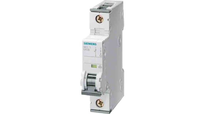 The Siemens 5SY6 series Single-pole miniature circuit breaker has a current rating of 63 A and 6 kA breaking capacity. The miniature circuit breaker is the fuse for short-circuit protection. Siemens offers a comprehensive portfolio of protection, switching, measuring and monitoring devices, distribution systems as well as switches and sockets for safe and efficient electrical infrastructure in buildings and industry.