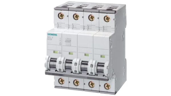The Siemens SENTRON series miniature circuit breaker has a four pole and has a current breaking capacity of 15kA. In the event of an overload or short-circuit this miniature circuit breakers safely cut off the connected circuit and reliably protect electrical installations and equipment from damage. The device have a uniform design and, with the appropriate accessories, can be expanded by many additional functions.