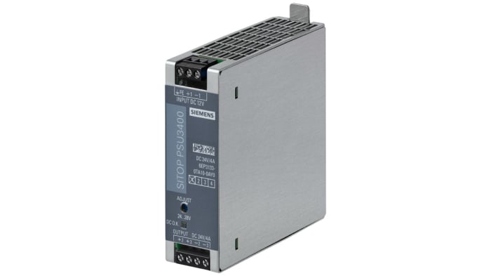 The Siemens SITOP PSU3400 is the optimum power supply for automation solutions in the lower performance range. It takes an input voltage of 9 to 18V DC and outputs a voltage 24V DC. Its wide range input and its compact and slim design make this power supply suitable for solutions where space is limited.
