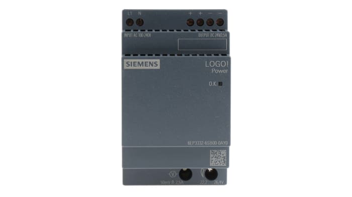 Siemens Switch Mode DIN Rail Power Supply, 2.5A, 60W – LOGO!POWER Series – 6EP3332-6SB00-0AY0