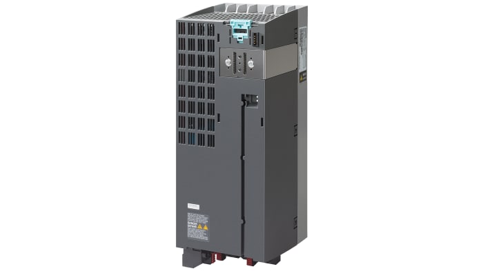 The Siemens 6SL3 series SINAMICS power module PM240-2 without filter with built in braking chopper with 97 % efficiency and 52 A maximum output current, having internal air cooling with Plug-in screw terminals.