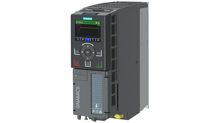 The Siemens SINAMICS G120X 1.1kW frequency converter runs stably under all network conditions and is particularly robust due to its operating temperature from -20°C to +45°C. It has rated current of 2.8A and is of FSA size.